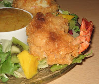 9. Drop the battered shrimp into the coconut and roll it around so that it is well coated.