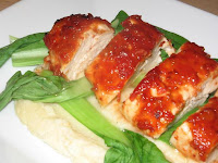 4. Bake for 8 minutes, turn over, brush with remaining sauce and bake a further 7 minutes or until cooked through.