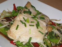 To serve: Spoon vegetables onto a plate, top with fish and garnish with extra coriander if desired.