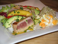3. Marinate tuna steaks in marinade for 2 hours. Grill tuna on high heat for 2 minutes on each side (do not overcook, or tuna will become dry).